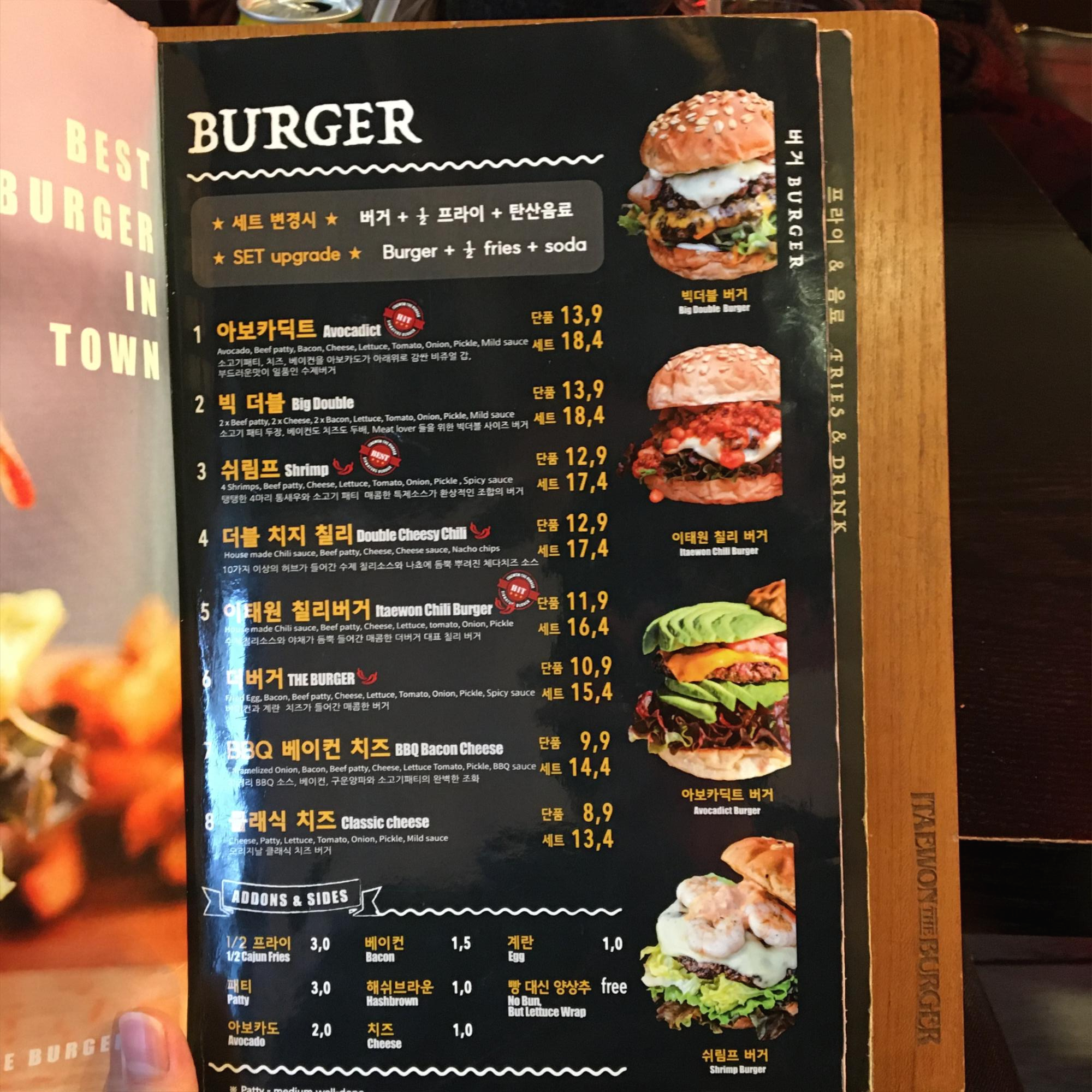 이태원에 있는 햄버거집답게 치즈 가득한 햄버거가 진짜 많더라구요 ㅋㅋㅋ