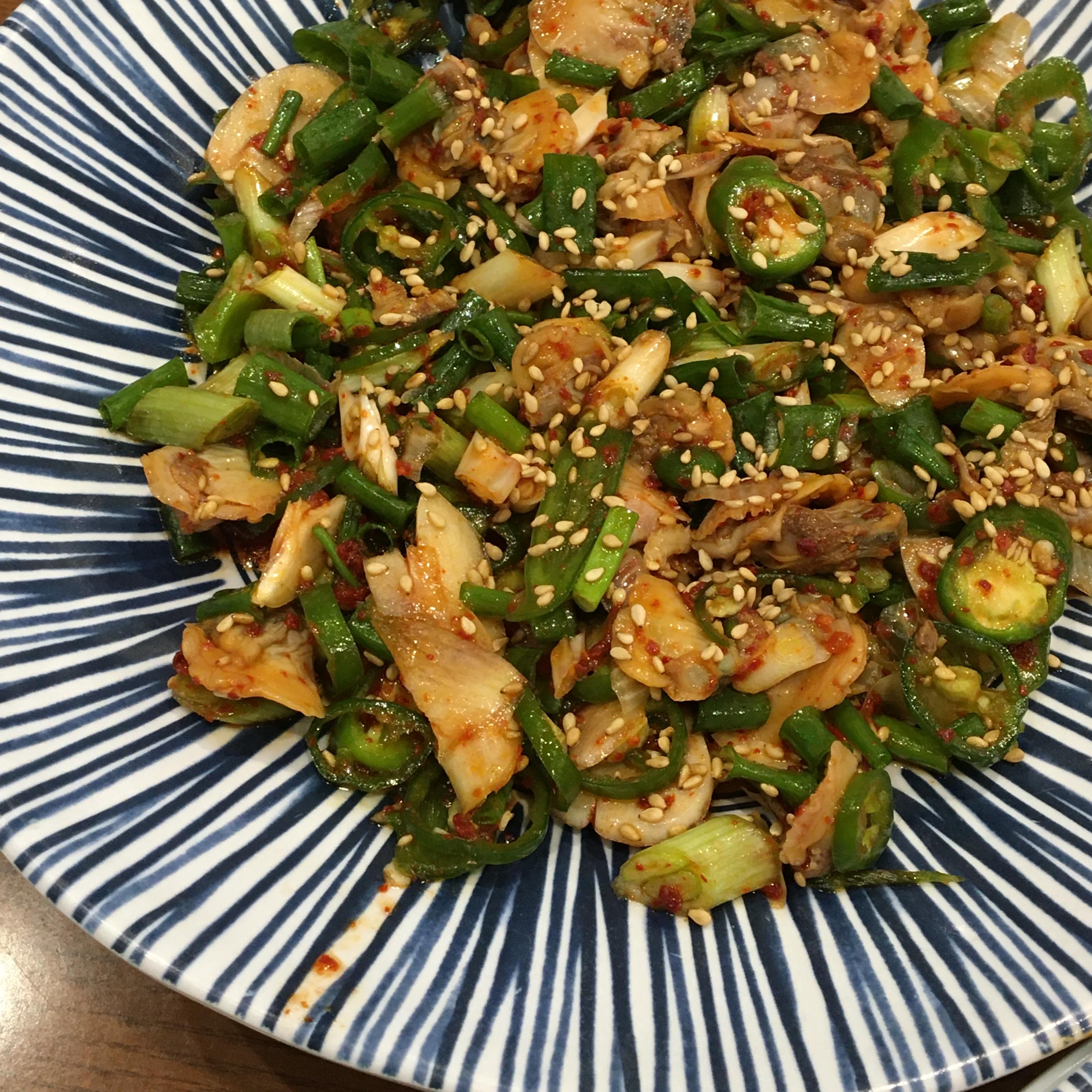 꼬막특유의 쫄깃함과 고추의 매콤함이 만나서