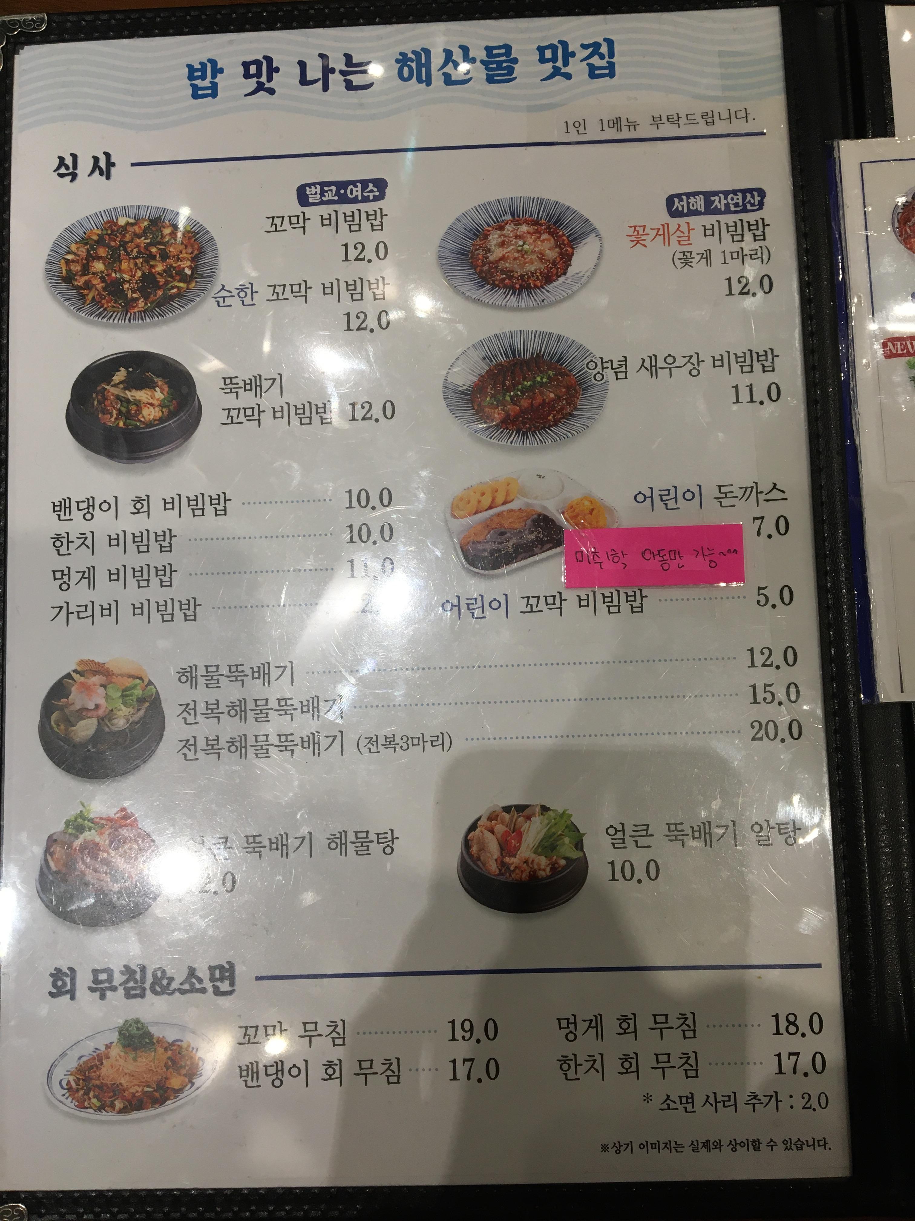 연안식당 메뉴에는 정말 다양한 것들이 있었지만
