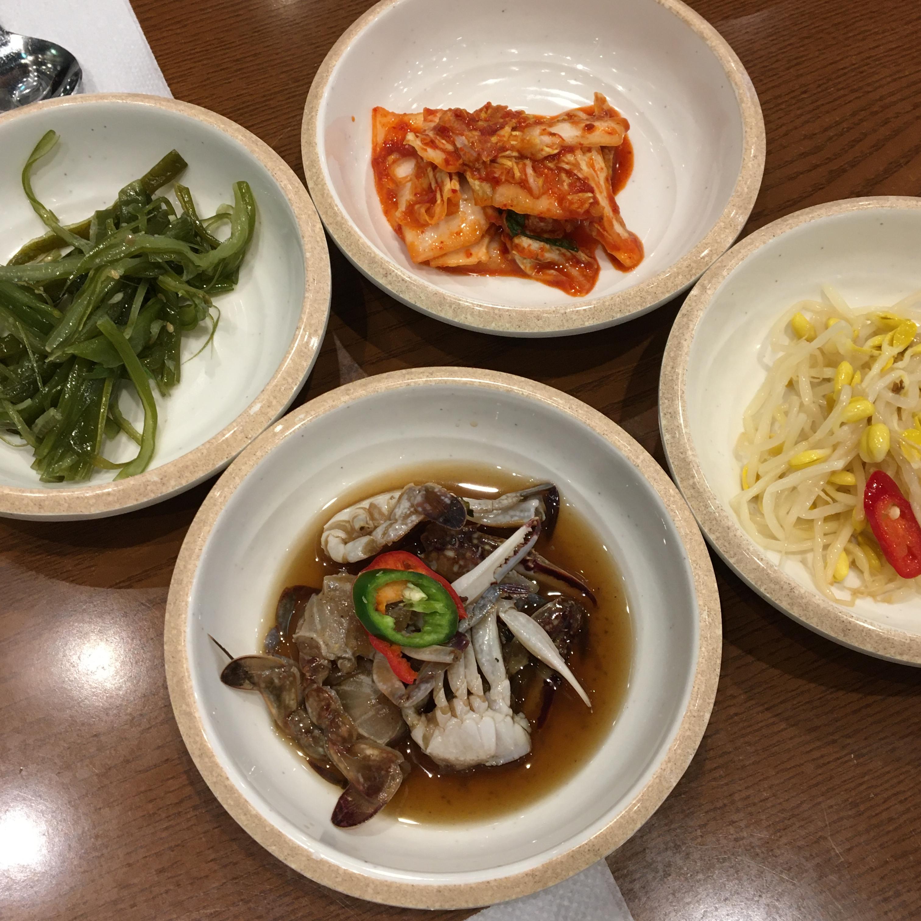 (미역줄기, 콩나물, 간장게장, 김치)