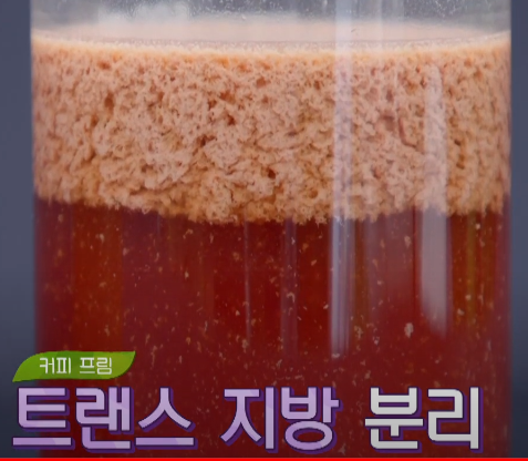 약 30분 정도를 기다려 본 결과 타트체리 성분이 트랜스 지방을 완벽하게 분리한 것을 볼 수 있습니다.