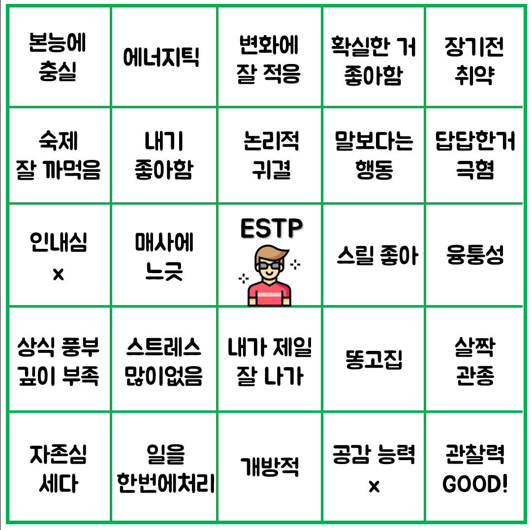 오늘은 MBTI 유형 중 ESTP 유형에 관해