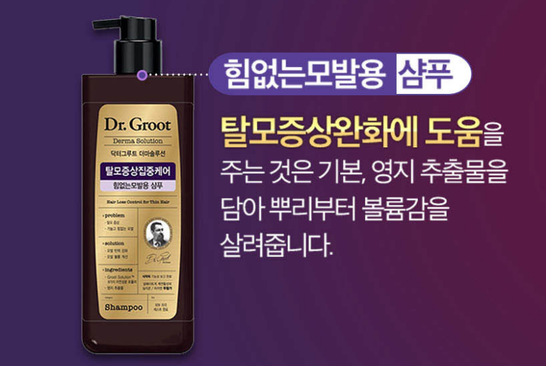 제가 구매한 샴푸는 요즘 김희철 샴푸로도 유명한 닥터 그루트 샴푸인데요, 주변에서도 이 샴푸를 정말 많이 사용하더라구요!