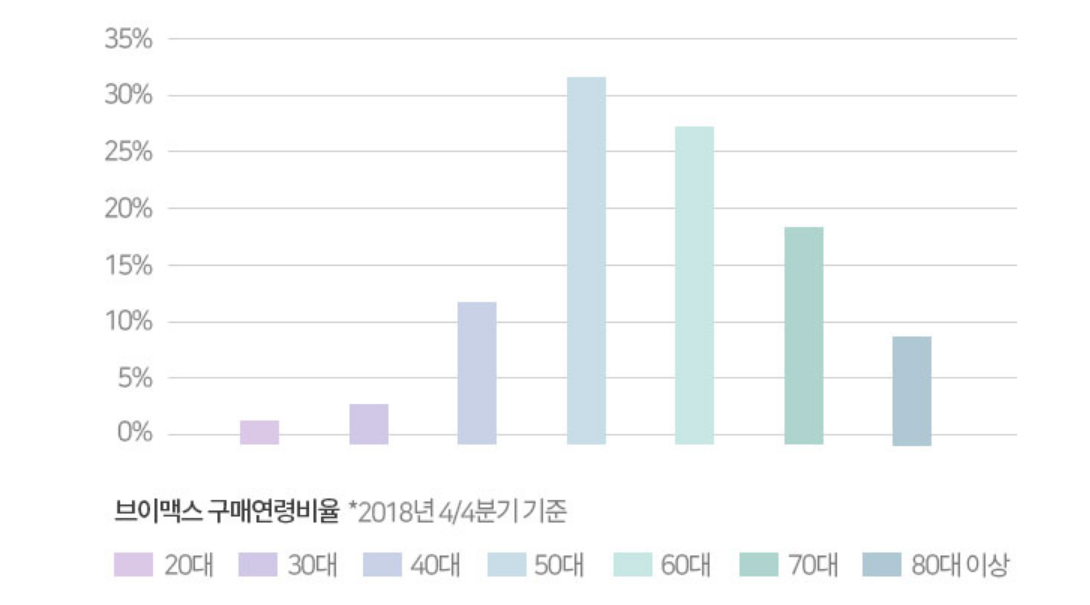 브이맥스 구매연령비율을 살펴보면 역시나 50대에서 가장 구매비율이 높습니다.
