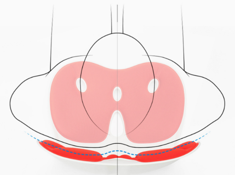 또한 위에서 보시다시피 에이블루 커블체어의 바닥은 곡선형으로 이루어져 있어, 몸을 어느 방향으로 움직이더라도 골반이 함께 움직여 척추가 휘지 않고 곧게 유지되도록 돕는 듯한 느낌을 받았습니다.