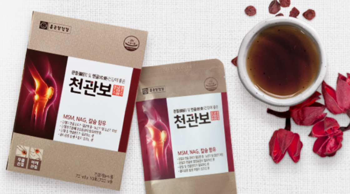 천관보에 함유된 MSM과 NAG 성분은 식약처를 통해 '관절 및 연골 건강에 도움을 줄 수 있다'고 기능성 인정을 받았습니다.