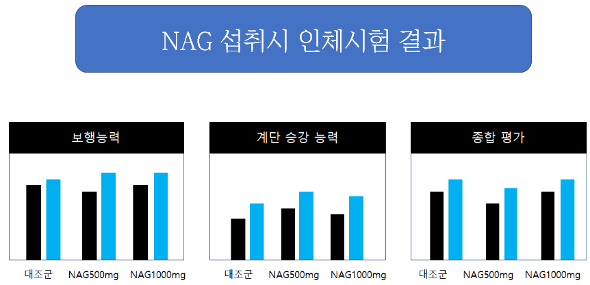 나이가 들수록 제대로 걷기 조차 힘드신 분들이 많은데, MSM와 NAG를 섭취한 사람들에게서 이러한 효과가 있었다고 하니 관절 때문에 고생하시는 분들은 주목하셔야 할 것 같아요!