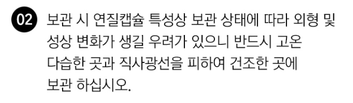 보시다시피 캡슐 크기가 매우 작아서 한 입에 쏙 넣기 좋은 사이즈입니다 :)