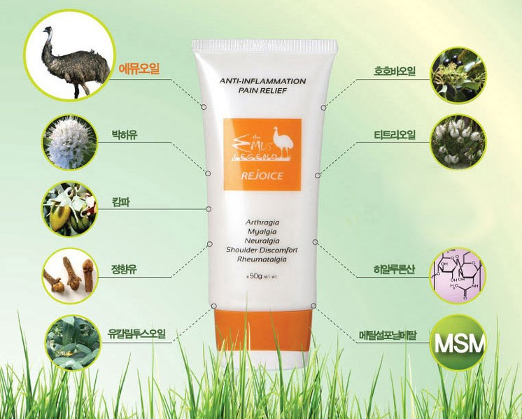 리조이스 관절크림의 주요 성분은 애뮤새로부터 얻을 수 있는 '에뮤오일'입니다.
