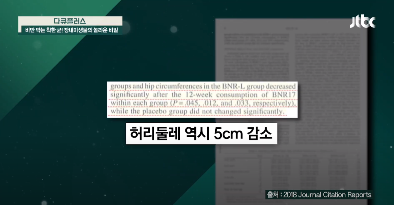 또한 과체중자들을 대상으로 12주 동안 BNR17 유산균을 섭취하게 하였는데, 과정을 지켜 본 결과 복부지방이 35% 감소, 허리둘레는 평균 5cm 가량 줄어들은 사례가 있었습니다.