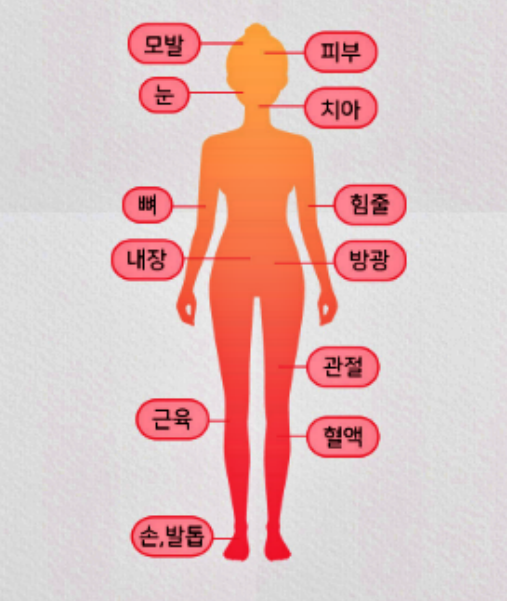 체내 단백질의 30%는 콜라겐으로 구성되어 있다는 사실 혹시 아셨나요? 피부의 진피층에도 약 70%가 콜라겐으로 구성되어 있는데요, 뿐만 아니라 근육, 뼈, 연골, 혈관 등 탄력성이 필요한 곳곳에 콜라겐이 분포되어 있습니다.