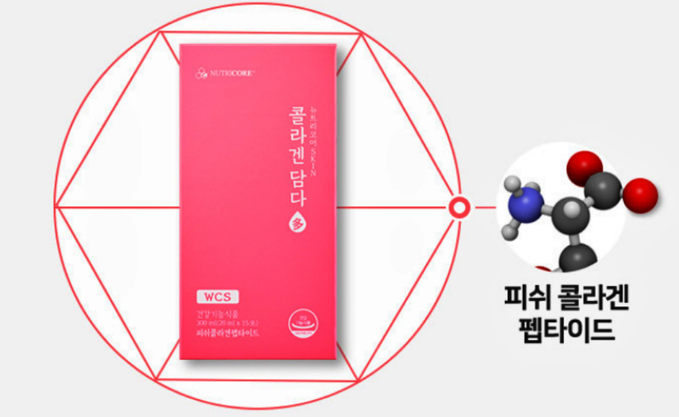 뉴트리코어 콜라겐의 장점은 바로 '저분자 펩타이드'를 최대치로 넣었다는 것인데요, 피부 건강에 도움을 줄 수 있는 기능성 원료인 저분자 피쉬 콜라겐펩타이드를 최대치로 함유시켜 제조된 제품입니다.