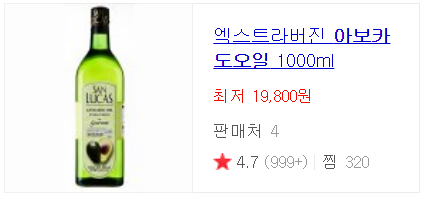 현재 네이버쇼핑에서 가장 인기있는 아보카도 오일 4사의 제품을 가져왔는데요, 가격은 다음과 같습니다.