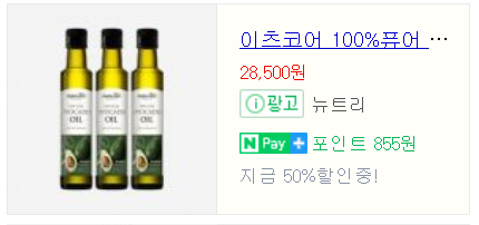 현재 네이버쇼핑에서 가장 인기있는 아보카도 오일 4사의 제품을 가져왔는데요, 가격은 다음과 같습니다.