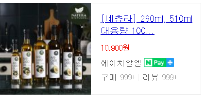 네츄라 아보카도 오일 260ml 기준 : 10,900원