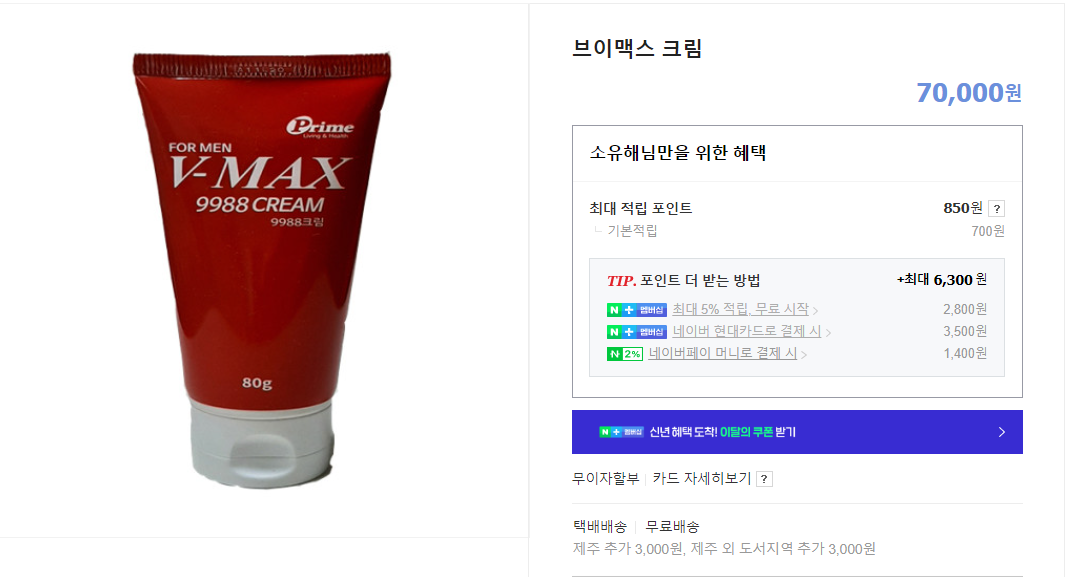 이 크림은 저하된 지구력으로 고민하고 계시는 남성 분들이 사용하시면 아주 효과적인 제품인데요, 실제로 브이맥스 크림을 사용해 보신 분들의 말에 의하면 효과가 즉각적으로 나타나 매우 만족한다고 합니다.