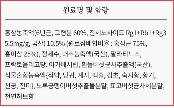 홍삼을 꾸준히 섭취하면 피로 개선, 면역력 증진, 기억력 개선, 혈소판 응집 억제를 통한 혈액 흐름, 항산화에 도움을 받을 수 있다고 하는데요, 이러한 효능 때문에 남녀노소 모두에게 사랑 받는 건강기능식품이 된 것이 아닌가 싶습니다.