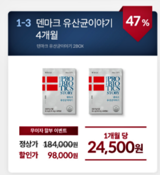 이 외에도 6개월분 276,000원 → 128,000원 / 4개월분 184,000원 → 98,000원에 판매하고 있습니다.