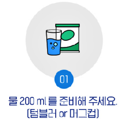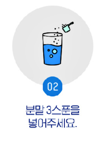 성인 기준으로 1일 1회 드시면 되는데요, 물 200ml에 분말 3스푼을 넣어주시고, 잘 흔드신 후에 맛있게 섭취하면 됩니다.