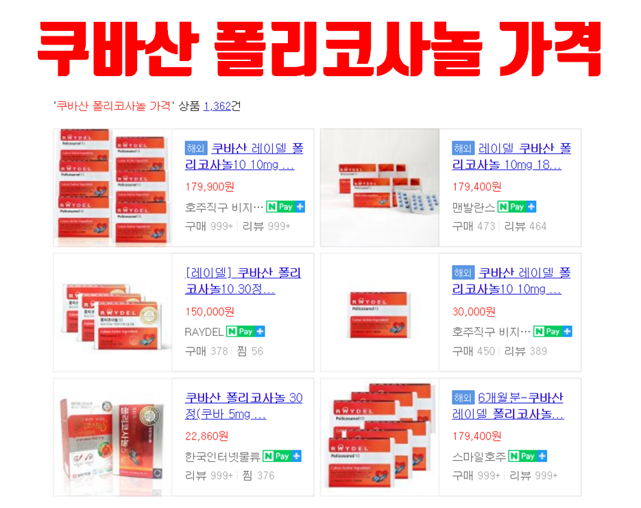 쿠바산 폴리코사놀 가격 효능