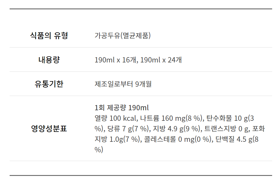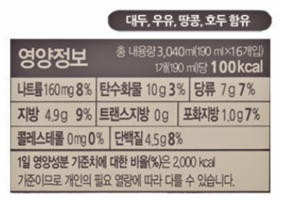 엄격하고 체계적인 공정 관리하에 국산콩을 전두유 방식으로 제조하였고, 콩 유래 식물성 단백질을 강화하여 1팩에 8g의 고단백질을 섭취할 수 있게 끔 만들어진 건강 음료입니다.