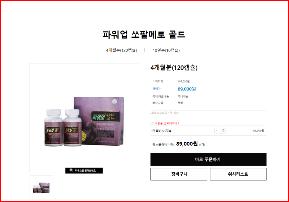 가격은 4개월분 120캡슐로 89,000원에 판매되고 있습니다.