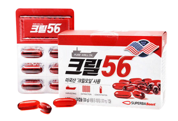 크릴오일 56은 청정해역 남극에서 어획된 크릴새우를 원료로 만든 제품으로 체내 흡수율이 높은 인지질 성분 56%가 포함됐습니다.