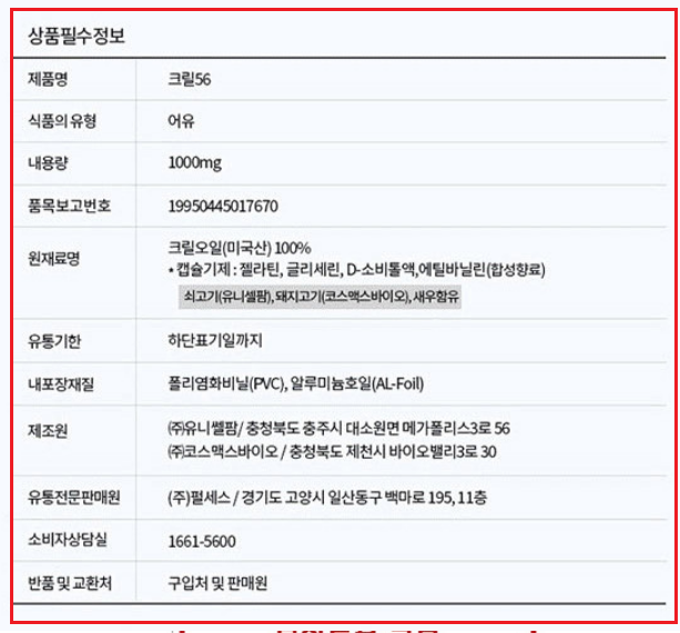 사실 크릴오일 사태(?)때도 펄세스 크릴오일 56은 적합 판정을 받았다고 합니다.