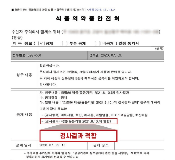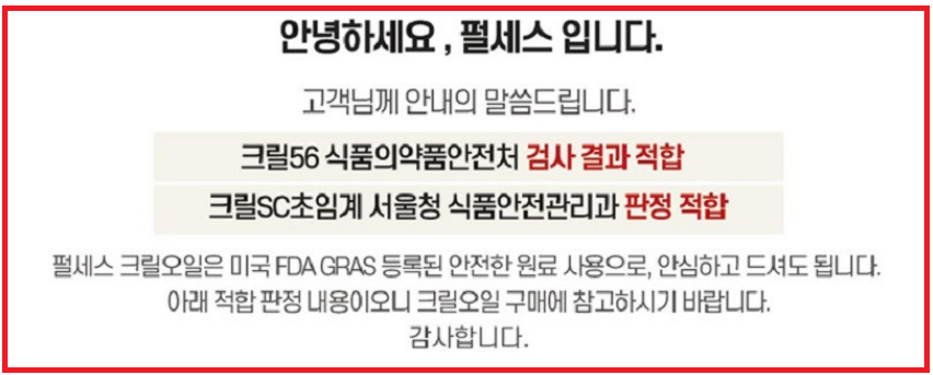 사실 크릴오일 사태(?)때도 펄세스 크릴오일 56은 적합 판정을 받았다고 합니다.