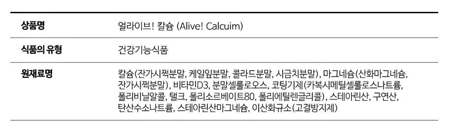 2) 얼라이브 칼슘