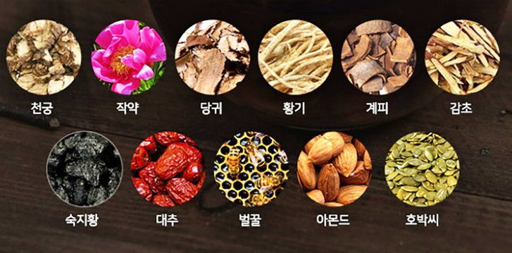 김오곤 쌍화차는 김오곤 원장이 직접 엄선한 재료로 만들어진 제품인데요, 숙지황, 당귀, 천궁, 작약, 계피, 감초, 황기 등 7가지 재료에 벌꿀, 대추, 아몬드, 호박씨 등을 배합하여 만들어졌고, 국내산 벌꿀과 국내산 대추 등도 들어있어 영양은 물론 맛에도 신경을 많이 썼더라구요!