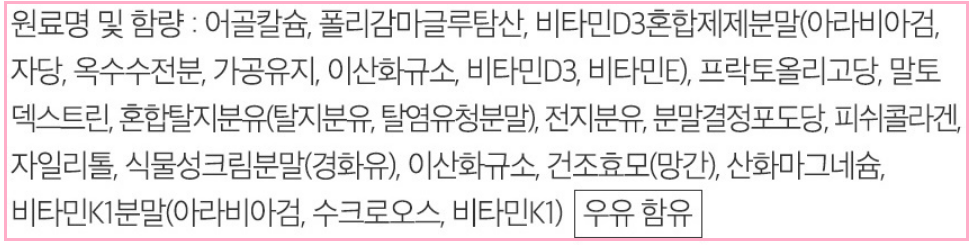 사실 '어골칼슘'은 제품명이 아니라 명태, 참치 등의 생선뼈에서 추출한 자연 유래 생선 칼슘입니다.
