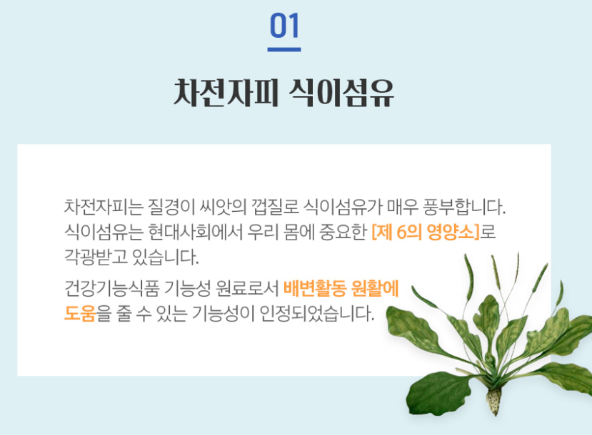 차전자피는 체내에 들어왔을 때 물과 만나면서 40배 팽창하게 되는데요, 장내 연동운동을 촉진을 도와 변비에도 효과적이라고 알려져 있습니다.