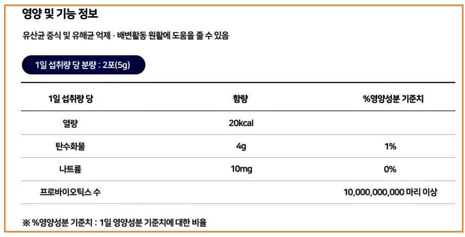 듀오락 유산균 성분 정보