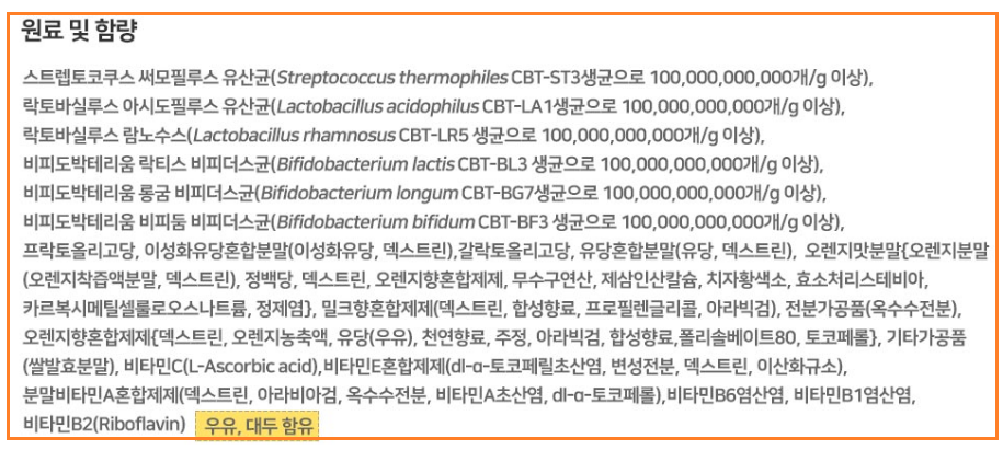 듀오락 유산균 성분 정보