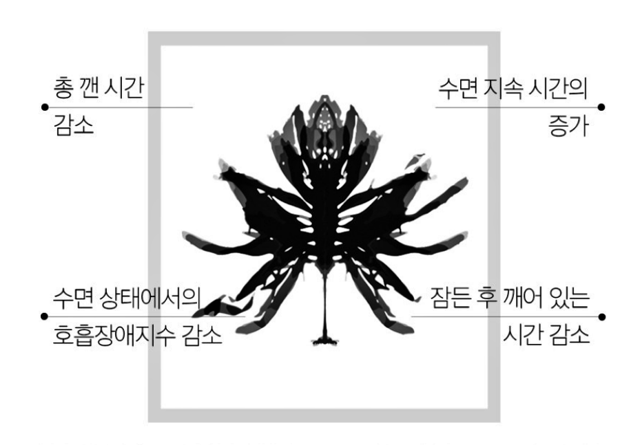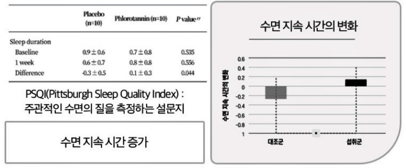 기능성 원료인 감태추출물의 인체적용시험이 있었는데, 1. 총 깬 시간 감소 / 2. 수면 지속 시간 증가 / 3. 수면 상태에서 호흡장애지수 감소 / 4. 잠든 후 깨어있는 시간 감소 등의 시험 결과가 있었습니다.