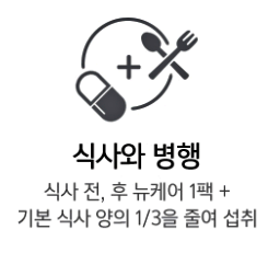 식사 대용이 아닌 단순 영양 보충용으로 드실 분들은 하루에 2~3팩을 드시면 되구요, 식사와 병행하시는 분들은 식사 전, 후로 뉴케어 1팩과 + 평소 드시던 양의 1/3을 줄여 함께 섭취하시면 됩니다.
