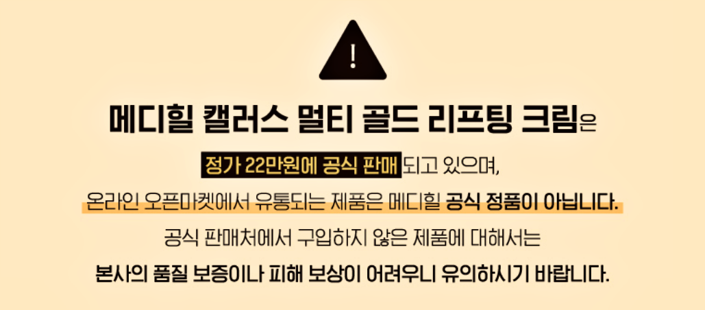 메디힐 캘러스 멀티 골드 리프팅 크림은 원래 시중에서는 몇 십 만원을 주고 사야하는데 반해, 군대 px에서는 2만원대에 구매가 가능하여 국군 장병 가족 or 친구를 통해서만 구입을 하던 화장품이었습니다.