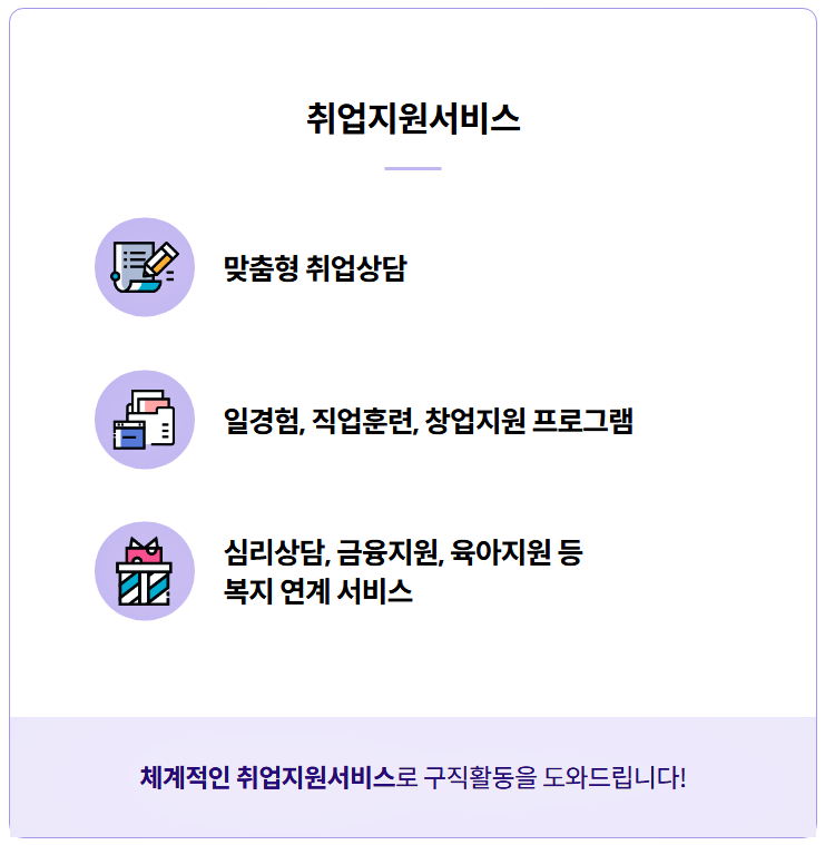 이 제도는 일할 능력과 의사가 있음에도 불구하고 취업 준비에 어려움을 겪는 국민들에게 취업 지원 및 생계지원을 통하여 구직 촉진과 생활 안정을 도모하고자 만들어진 제도 입니다.