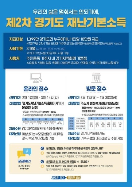 2차 재난지원금 지급 일자에 대해서는 조만간 경기도의 입장 발표가 있을 예정이니 내용이 공개되는대로 실시간 업데이트 하도록 하겠습니다.
