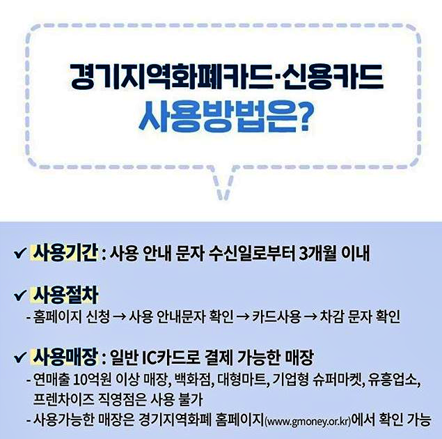 - 사용가능한 매장은 경기지역화폐 홈페이지에서 확인가능