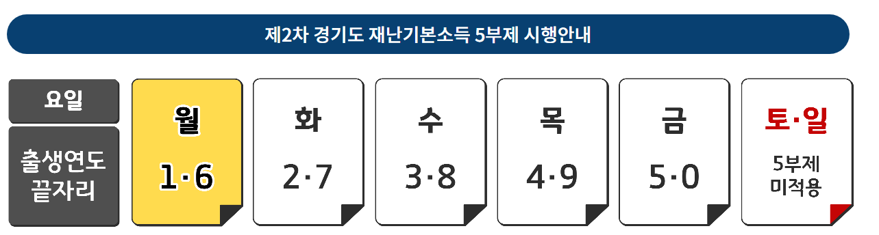 이번 경기 2차 재난기본소득 신청 역시 1차 재난지원금 신청 때와 같은 방식(5부제 신청)으로 이루어집니다.