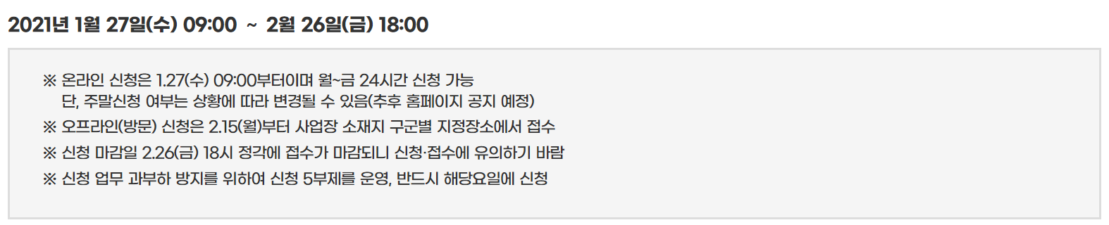* 신청기간 : 2021. 01. 27 9시 ~ 2021. 02. 26 18시