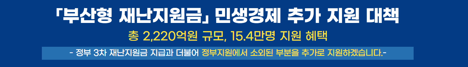 다음은 앞서 소개해드린 부산 재난지원금 외에 코로나바이러스 감염증(코로나19) 3차 확산으로 어려움을 겪고 있는 민생경제 지원을 위한 부산형 플러스 지원금 사업 소개입니다.