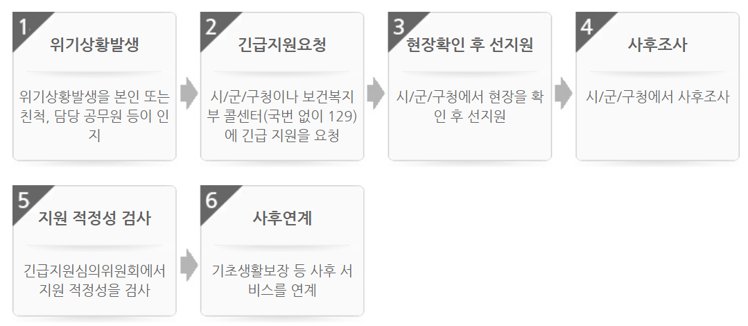 - 긴급 생계지원금은 다음과 같은 절차로 진행됩니다.