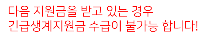 또한 이번 긴급복지 생계지원금은 다음과 같은 사업과 중복해서 받을 수 없습니다.