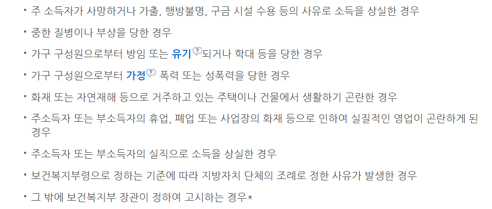 *참고 : 다른 위기사유가 발생하였더라도 긴급지원이 종료된 때로부터 3개월 이내에는 지원불가
