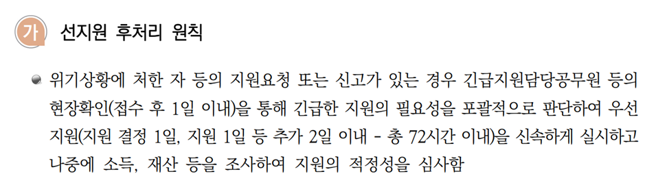 *참고 : 다른 위기사유가 발생하였더라도 긴급지원이 종료된 때로부터 3개월 이내에는 지원불가