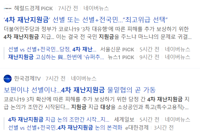 오늘은 현재 정부에서 논의중인 4차 재난지원금에 대한 소식에 관해 알려드리고자 합니다.