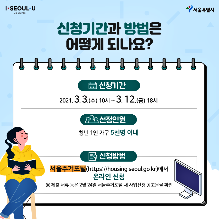 * 필요한 서류는 2월 24일 서울주거포털 사이트 내 사업신청 공고문을 통해 확인가능합니다.